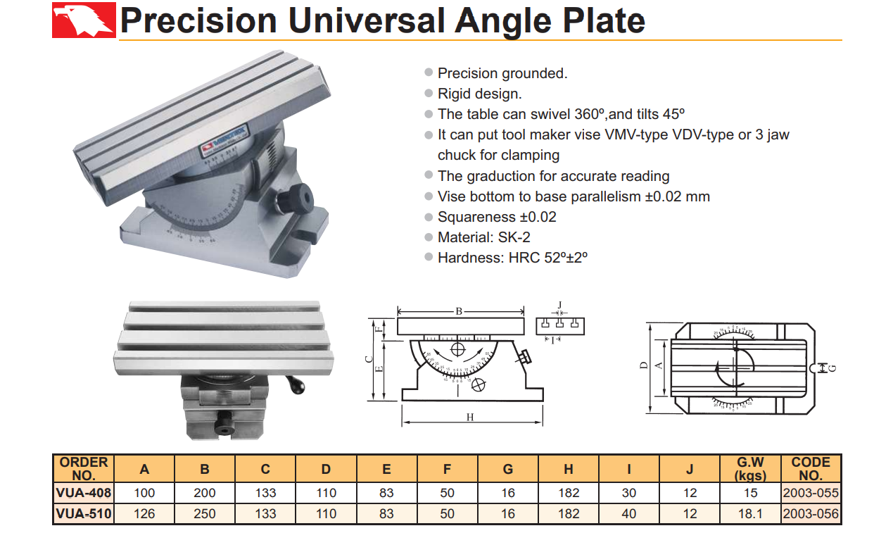 Bàn chia độ chính xác loại bàn máy mã VUA-408, VUA-510 nhập khẩu từ Vertex, CO, CQ được cấp bởi phòng thương mại Đài Loan. Sản phẩm được phân phối trên toàn quốc.