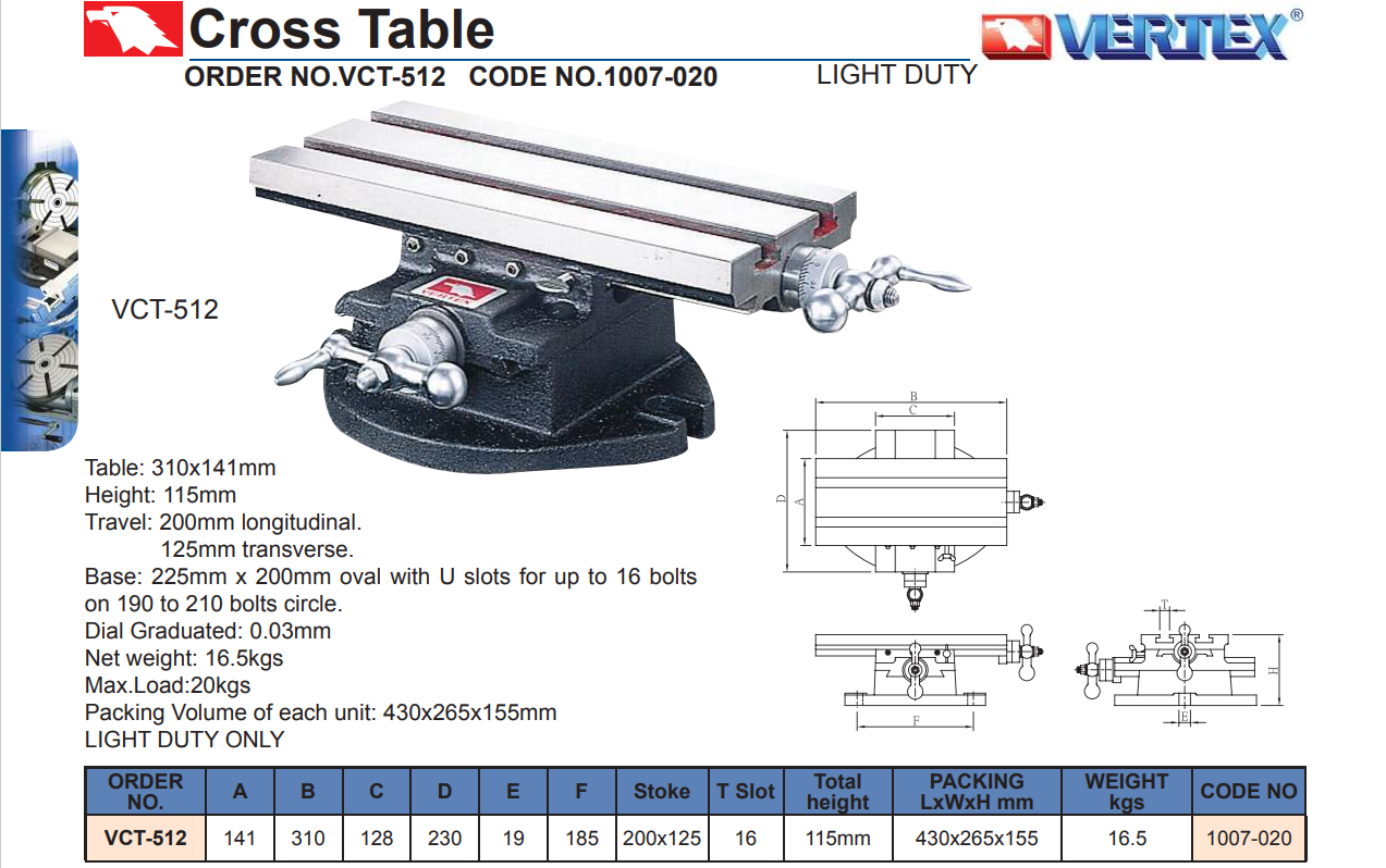 – Bàn máy phay chữ thập VCT-512 điều khiển chạy theo 2 chiều X, Y. Có thể thay thế bàn máy hoặc lắp lên các máy loại nhỏ để gia công.