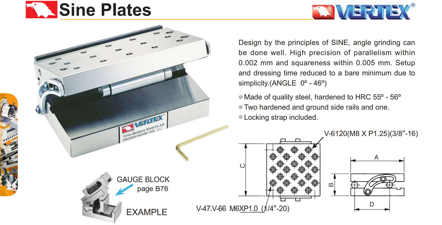 Bàn nghiêng lỗ ren Vertex V- dùng để gá các ê tô máy mài trong quá trình mài nghiêng.