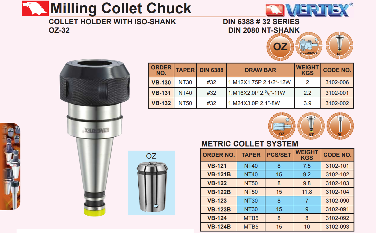 – Collet OZ-32 theo tiêu chuẩn MAS (xem sản phẩm Collet OZ).