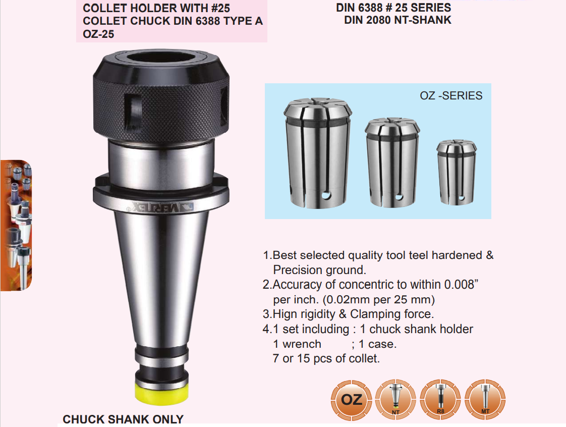 CHUCK SHANK : Kiểu côn bầu kẹp – lắp với kiểu côn trục chính của máy phay.