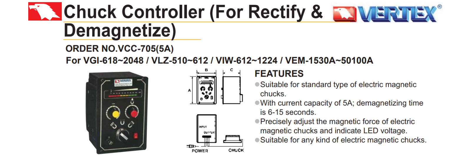 Bộ điều chỉnh bàn từ Vertex VCC-705 dùng điều chỉnh lực từ, nguồn điện của bàn từ trong quá trình gia công.