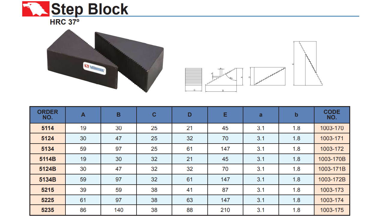 Bước khối VERTEX là một trong những đồ gá không thể thiếu trong máy phay, với thao tác kẹp nhanh chóng, khoảng các kẹp tùy ý giúp bạn đa dạng hơn trong việc gia công. Sản phẩm có một số mã như 5114, 5124, 5134, 5114B, 5124B, 5134B, 5215, 5225, 5235 tùy theo mục đích sử dụng của bạn.