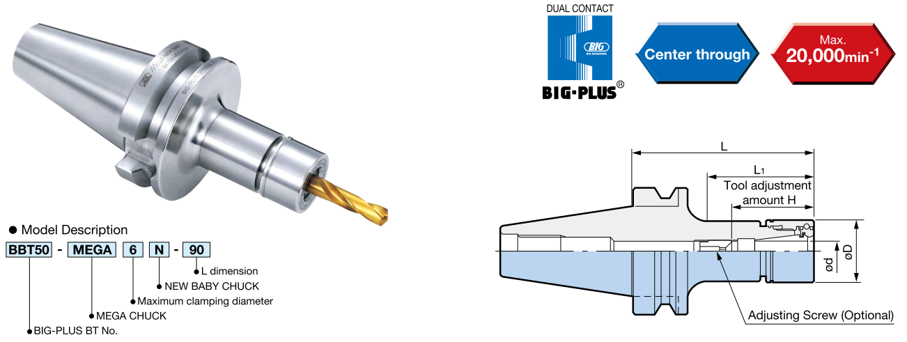 Đầu kẹp dao Big Daishowa là dòng sản phẩm cao cấp đến từ Nhật Bản, Gia công chính xác cao, tiết kiệm chi phí và thời gian vận hành. Sản phẩm luôn được các đối tác tin dùng