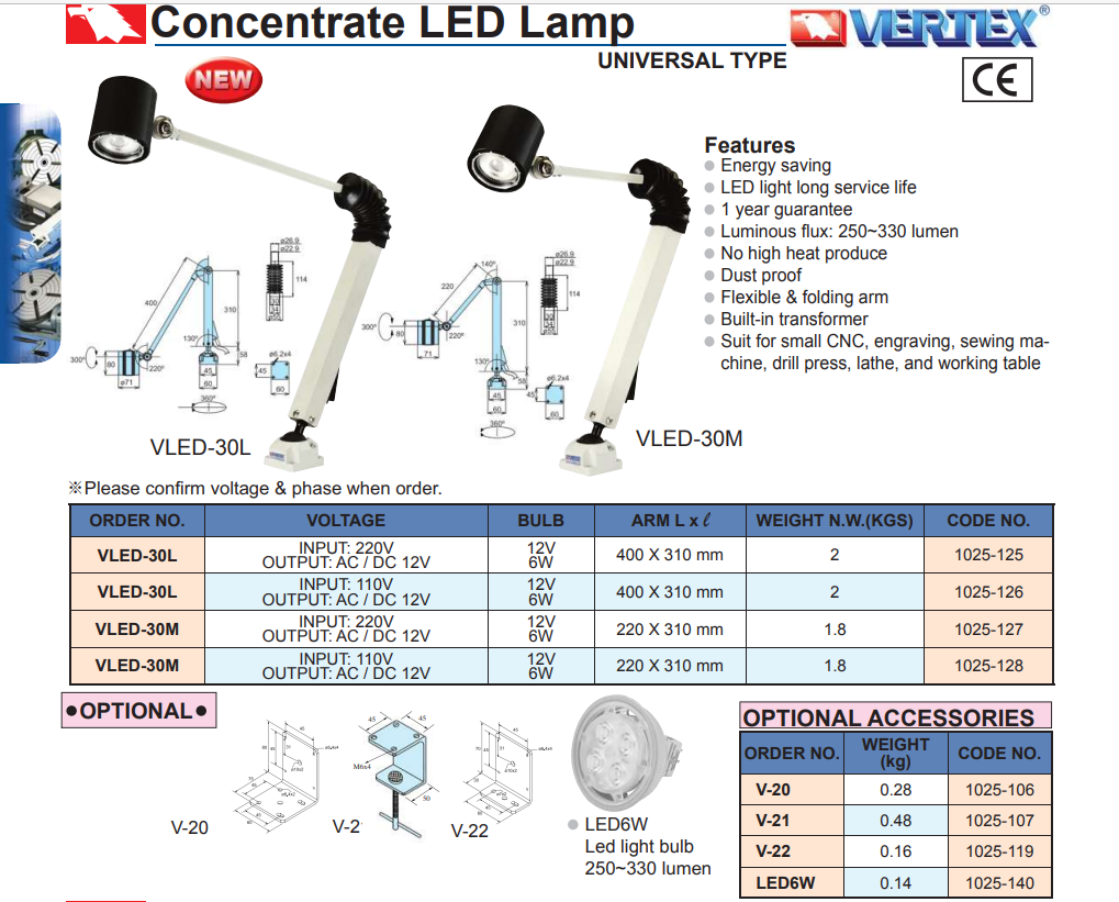 Đèn LED tập trung Vertex VLED-30L là kiểu đèn làm việc chống nước, chống bui. Được dùng để lắp đặt trên các máy CNC, máy công cụ và các máy gia công khác.