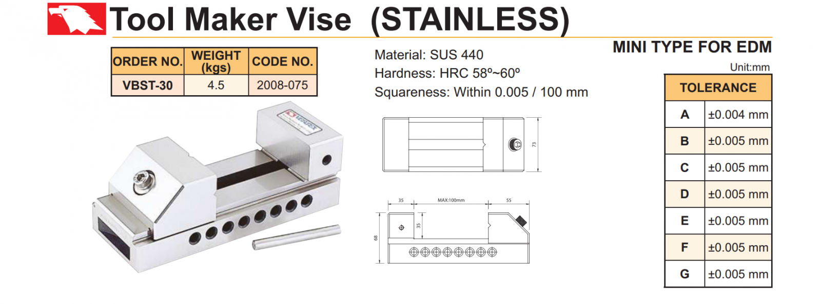 – Ê tô máy mài bằng inox thích hợp sử dụng trên máy EDM và máy mài.