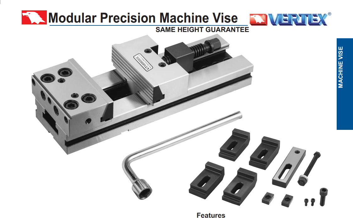 – Ê tô máy phay mô đun chính xác của VERTEX có chiều cao chính xác như nhau. Nên có thể sử dụng nhiều ê tô mô đun hóa cùng 1 lúc để kẹp chi tiết lớn.