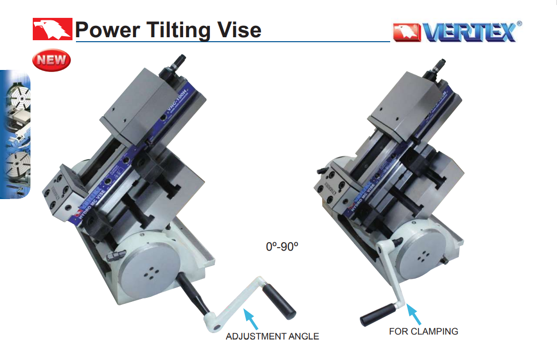 – Ê tô thủy lực bàn nghiêng VUT-NC có thể thiết lập được góc nghiêng từ 0 – 90°.