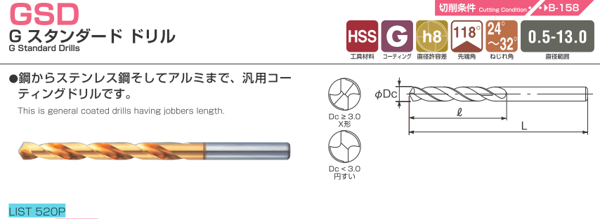 Mũi khoan NACHI LIST 520P là dòng mũi khoan thép gió có phủ sử dụng cho nhiều vật liệu khác nhau. Thích hợp gia công thép khuôn, thép thường và có thể làm việc được với vật liệu Inox. Mũi khoan được phủ để tăng độ bền, hạn chế sinh nhiệt trong quá trình gia công
