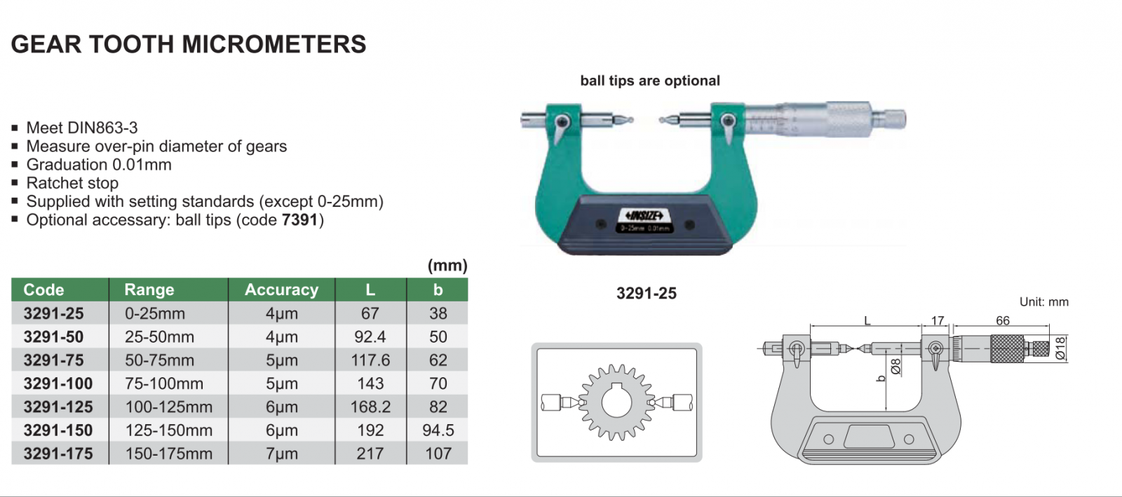 Panme bánh răng INSIZE là đồ dùng có nhiều chức năng phạm vi đo rộng, độ chính xác tương đối cao, dễ sử dụng, giá cả rẻ…