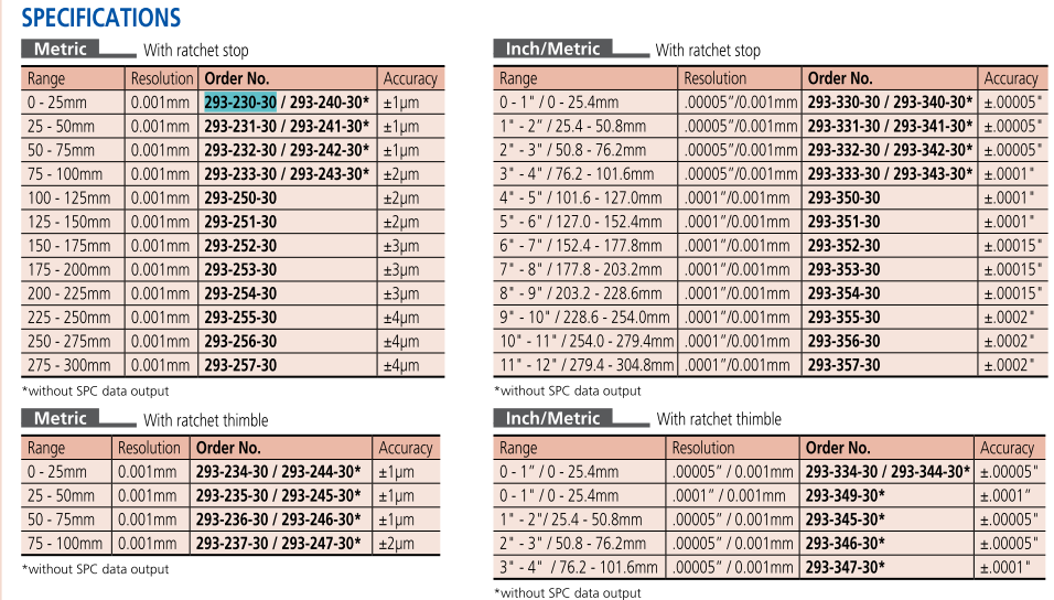 Mã hàng 293-253-30 là dụng cụ đo panme cơ khí điện tử đo ngoài khoảng đo từ 175-200mm/0.001mm