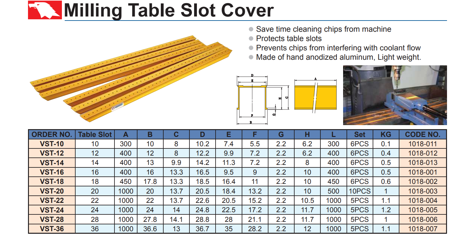 – Thanh phủ rãnh bàn máy phay VST của VERTEX dùng bịt kín các rãnh bàn máy khi gia công. Không cho phoi rơi xuống rãnh bàn máy phay.