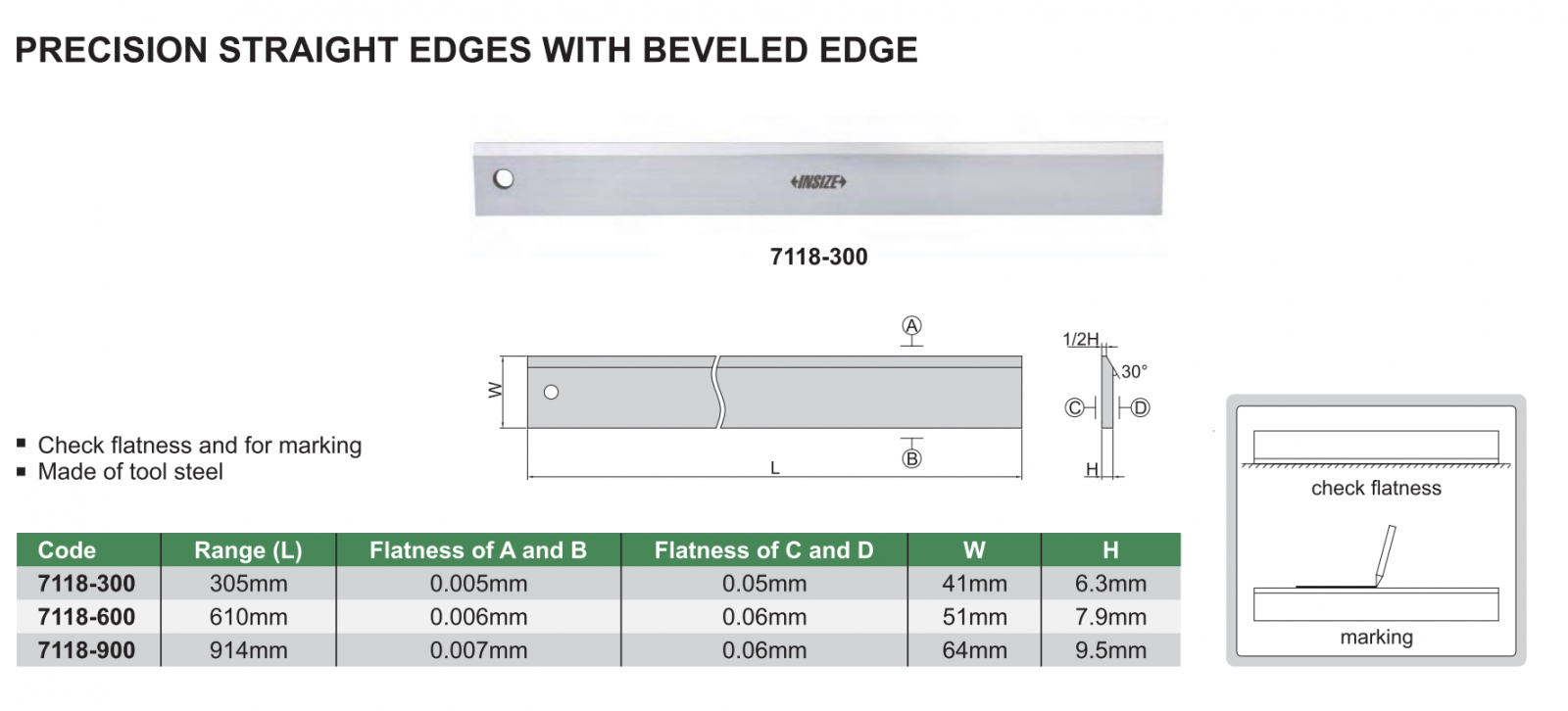 Thước đo độ thẳng INSIZE 7118-300 , PRECISION STRAIGHT EDGES WITH BEVELED EDGE 7118-300
