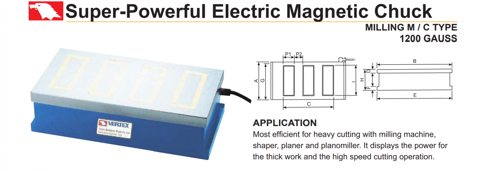 Bàn từ điện 200×400 lực kẹp lớn Vertex VEM-2040Z dùng để gá các chi tiết trong quá trình gia công với lực lớn.