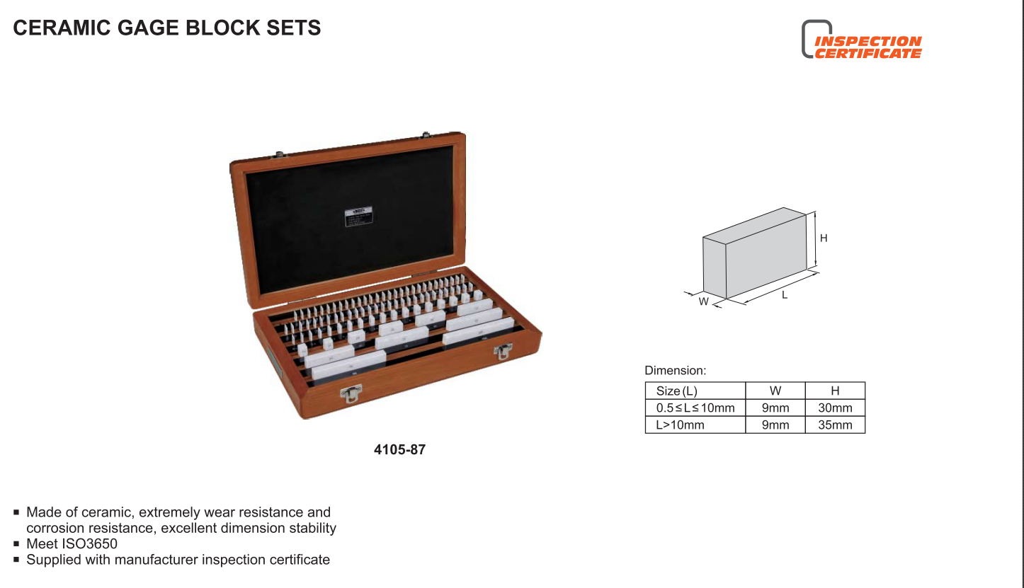 Bộ block thử INSIZE là một miếng thép đã gia nhiệt, được mài chính xác về kích thước, cũng như về hình học như độ phẳng và song song giữa các bề mặt