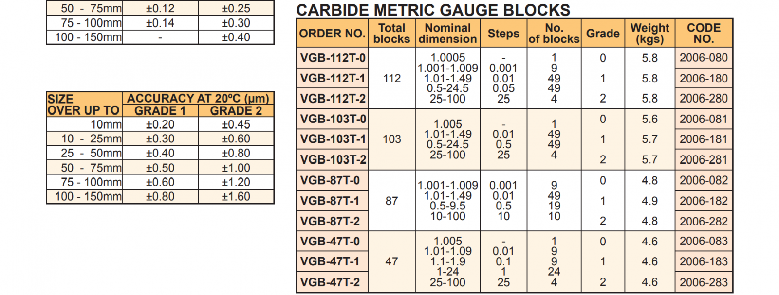 Bộ căn mẫu thép chính xác Vertex VGB: VGB-112T-0; VGB-112T-1; VGB-112T-2; VGB-103T-0;VGB-103T-1;VGB-103T-2; VGB-87T-0; VGB-87T-1; VGB-87T-2; VGB-47T-0; VGB-47T-1; VGB-47T-2.