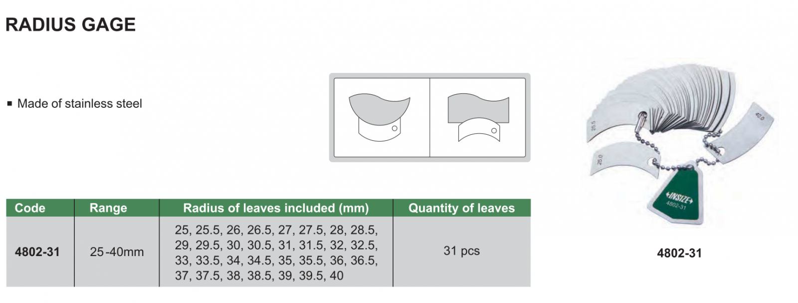 Bộ dưỡng đo ren INSIZE 4802-31 , RADIUS GAGE 4802-31