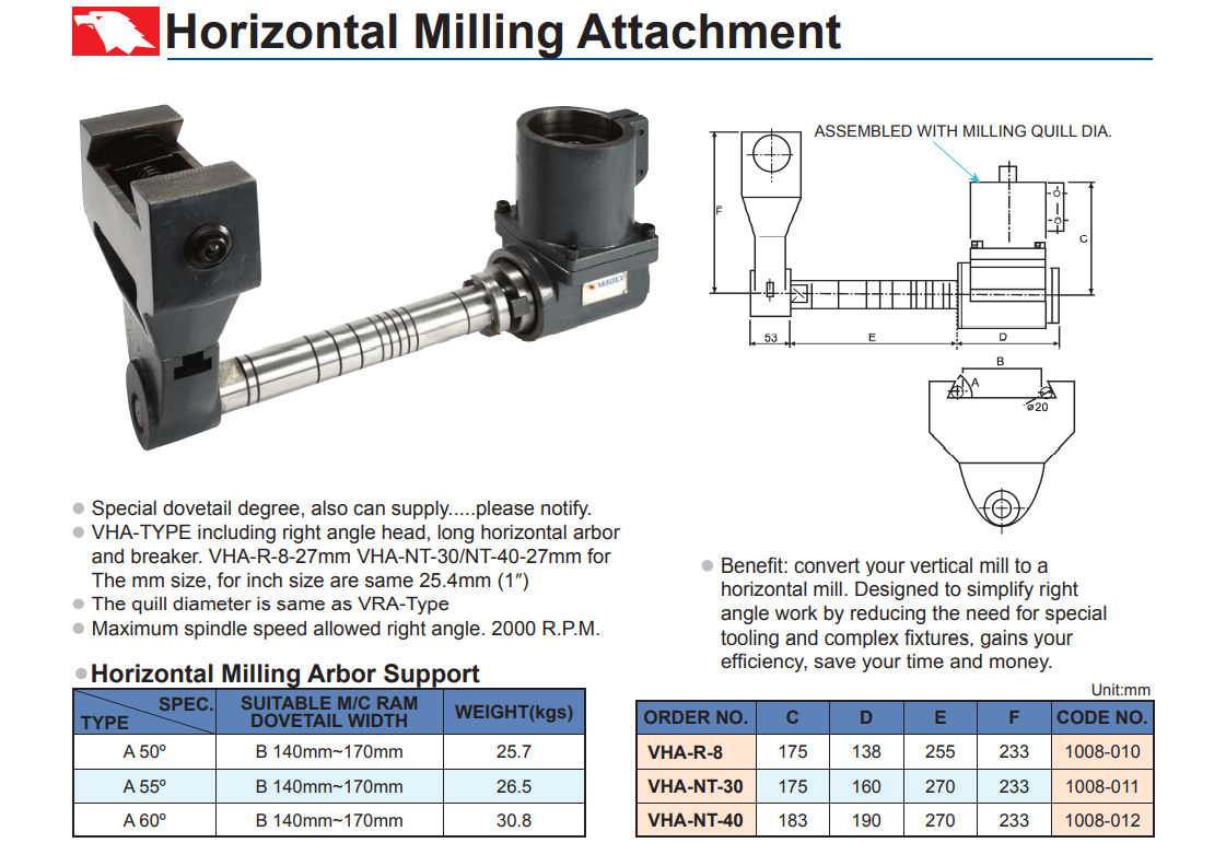 – ĐẦU PHAY NGANG VERTEX dùng thay thế đầu phay trên máy phay với những kích thước khác nhau cho bạn lựa chọn phù hợp với kích thước máy phay của bạn.