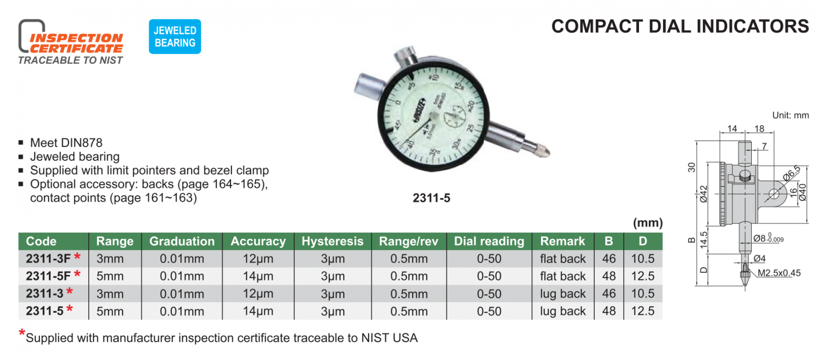 Đồng hồ so chân gập INSIZE là loại đông hồ so ứng dụng đo độ dơ, độ lệch trong gia công và sản xuất cơ khí