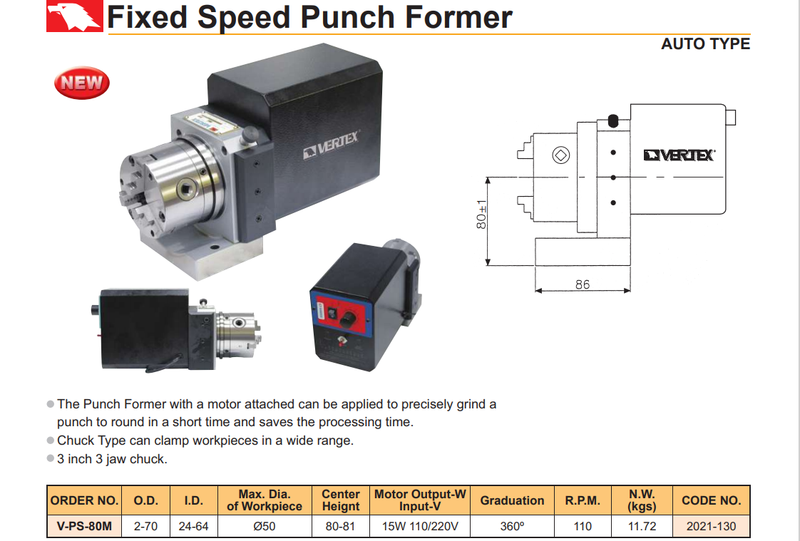 Dụng cụ sửa đá Vertex V-PS-80M dùng mâm cặp để gá kẹp các mũi sửa đá và sửa đá mài theo các biên dạng khác nhau theo yêu cầu sử dụng
