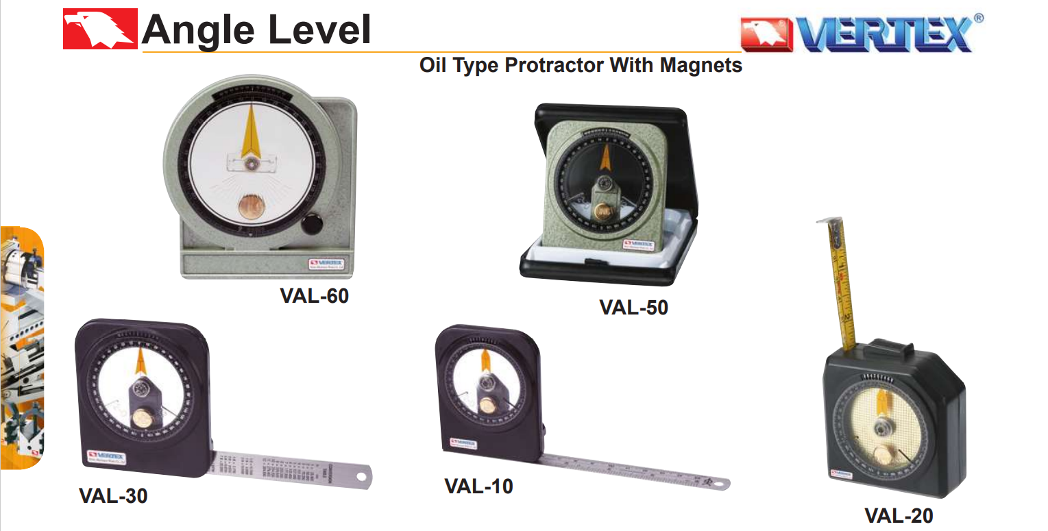 – Li vô đo góc nghiêng VAL-10, VAL-30, VAL-50, VAL-60, VAL-20 của VERTEX được sử dụng để đo độ nghiêng của mặt phẳng chi tiết.