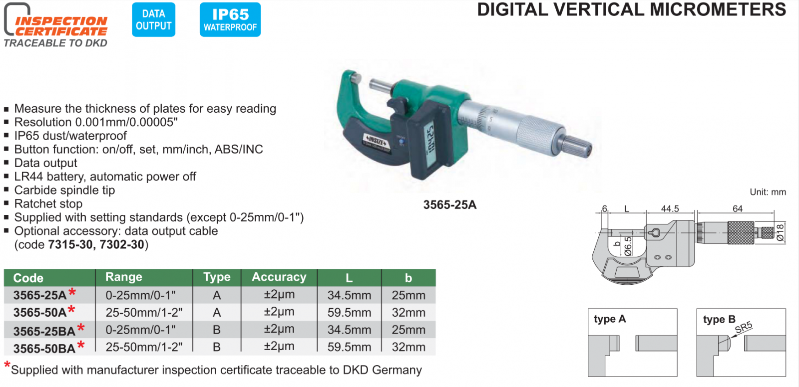 Panme điện tử INSIZE là đồ dùng có nhiều chức năng phạm vi đo rộng, độ chính xác tương đối cao, dễ sử dụng, giá cả rẻ…