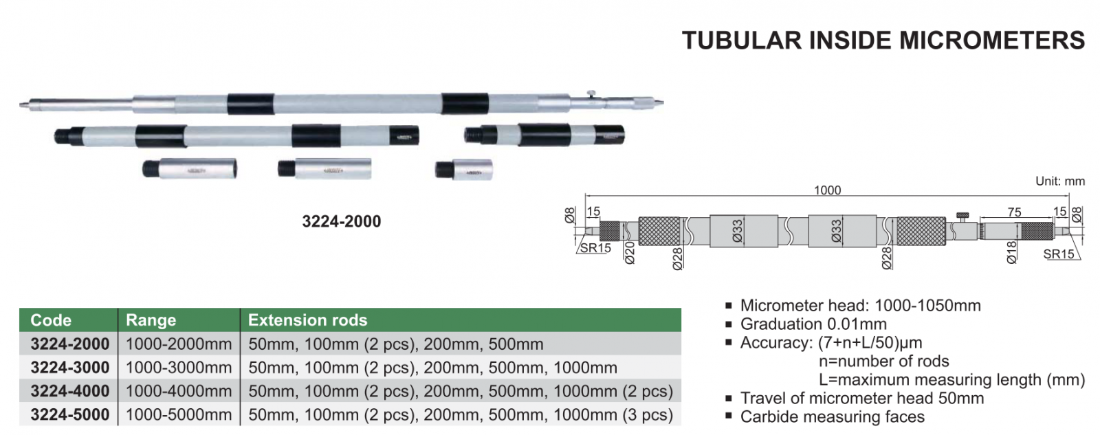 Panme đo trong dạng ống INSIZE là đồ dùng có nhiều chức năng phạm vi đo rộng, độ chính xác cao, dễ sử dụng, giá cả rẻ…