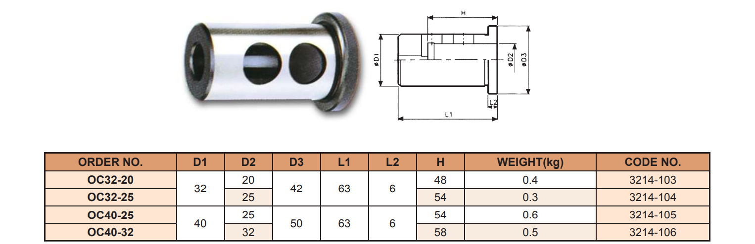 PHỤ KIỆN BẦU KẸP DAO CÓ LỖ TƯỚI NGUỘI BÊN TRONG  VERTEX  OC32-20, OC32-25, OC40-25, OC40-32