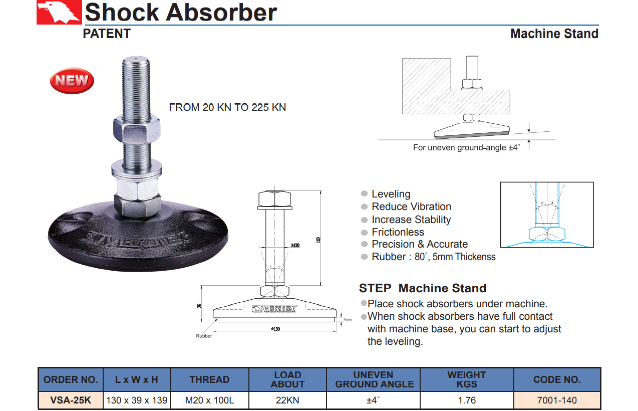 Thiết bị giảm rung động máy mã VSA-25K được hãng Vertex sản xuất với chất lượng cao, chuyên dùng cho việc giảm độ rung động trong quá trình gia công cơ khí.