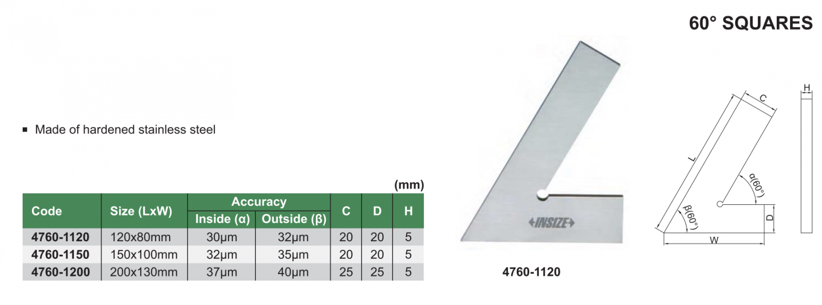 Thước đo góc INSIZE 4760-1120 , 60 độ SQUARES 4760-1120