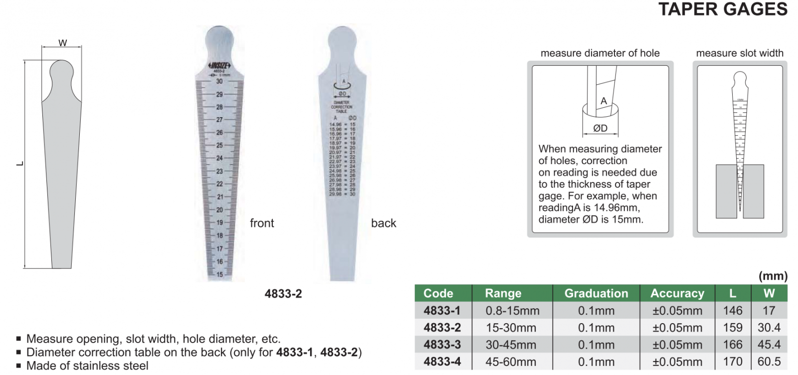 Thước đo rãnh INSIZE 4833-2 , TAPER GAGES 4833-2